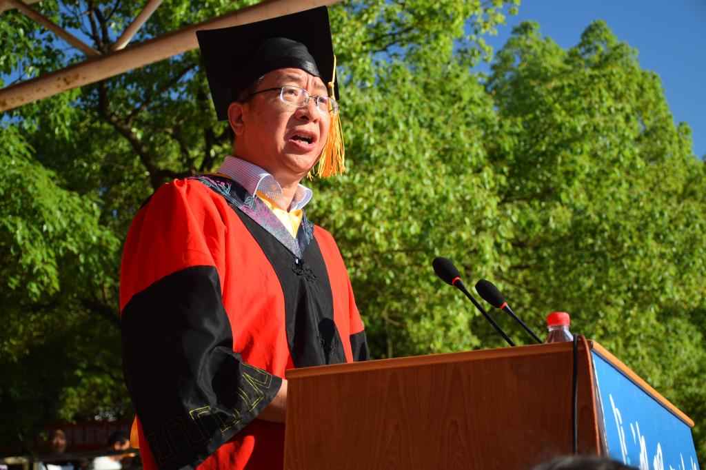 校党委书记付宏渊在典礼上以《不要让“岁月静好”牵绊前行的脚步》为题致辞,向顺利完成学业的毕业生表示衷心的祝贺与祝福,向家长和老师们致以最衷心的感谢和最崇高的敬意。