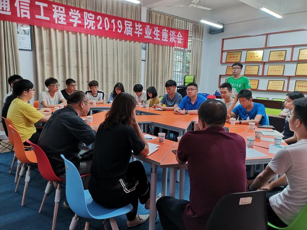 6月6日下午,计通学院在理科楼B103召开2019届毕业生座谈会。学院党委书记甘为、副院长王威、副书记陈华参加,学工办辅导员潘枝花主持。2019届本科生、研究生共计20名毕业生代表参加。