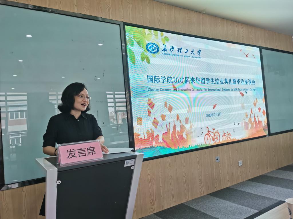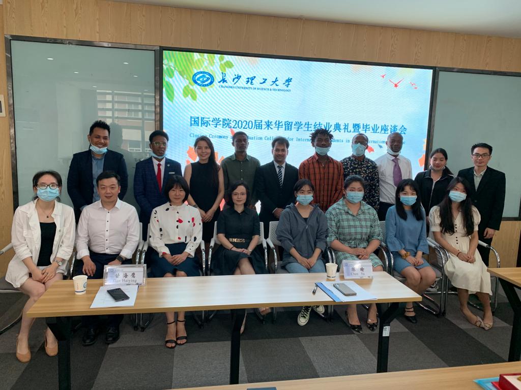 7月1日下午,国际学院举办了2020届来华留学生结业典礼暨毕业座谈会。国际学院院长陈瑜、副院长甘海鹰、留学生工作部、留学生教学部的老师们及2020届全体毕业生及结业生参加了典礼,留学生工作部负责人王荟惠主持典礼。