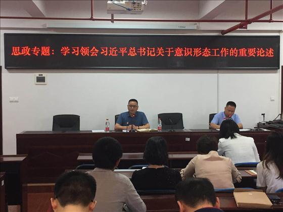 院党总支书记张国强以“学习领会习近平总书记关于意识形态工作的重要论述”为题,与全院教职工分享学习了习近平总书记自十八大以来就意识形态工作的一系列讲话精神。他强调:加强意识形态工作,加强理论武装是前提,坚定理想信念是基础,践行社会主义核心价值观是重点,落实责任是关键。要通过主题教育常态化,把习近平新时代中国特色社会主义思想武装到头脑,牢牢把控课堂主阵地,加强师德师风建设,加强宣传阵地建设与管控,加强对学生学习生活等人文关怀,静心务实干事业,凝心聚力谋发展。院长毛卫国指出要占领意识形态的主阵地,自觉将意识形态工作融入教学、科研和人才培养,落细、落小、落实,严格把关,守住阵地,切实抓好意识形态工作,担负起政治使命,同心协力,为学院的快速、高质量发展贡献自己的力量。