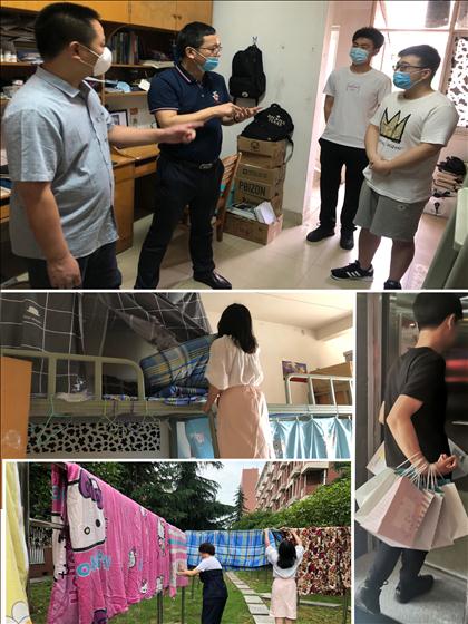 党总支书记张国强、院长毛卫国、党总支副书记唐青深入学生寝室,看望慰问学院首批返校学生,亲切询问了学生毕业论文实验和撰写以及学生目前就业签约情况,并嘱咐同学们:要严格遵守学校关于疫情防控的各项规章制度,关注自身健康,做好个人防护,合理作息、适当锻炼,注意宿舍通风,不串门,不参加聚集性活动。学院还为同学们准备了返校爱心包。学工全体辅导员和本科生与研究生学生党支部一同开展校园爱国卫生大扫除,进一步激发师生关于爱国卫生运动的主观能动性,筑牢健康防线、阻断传播途径,为疫情防控工作贡献力量。