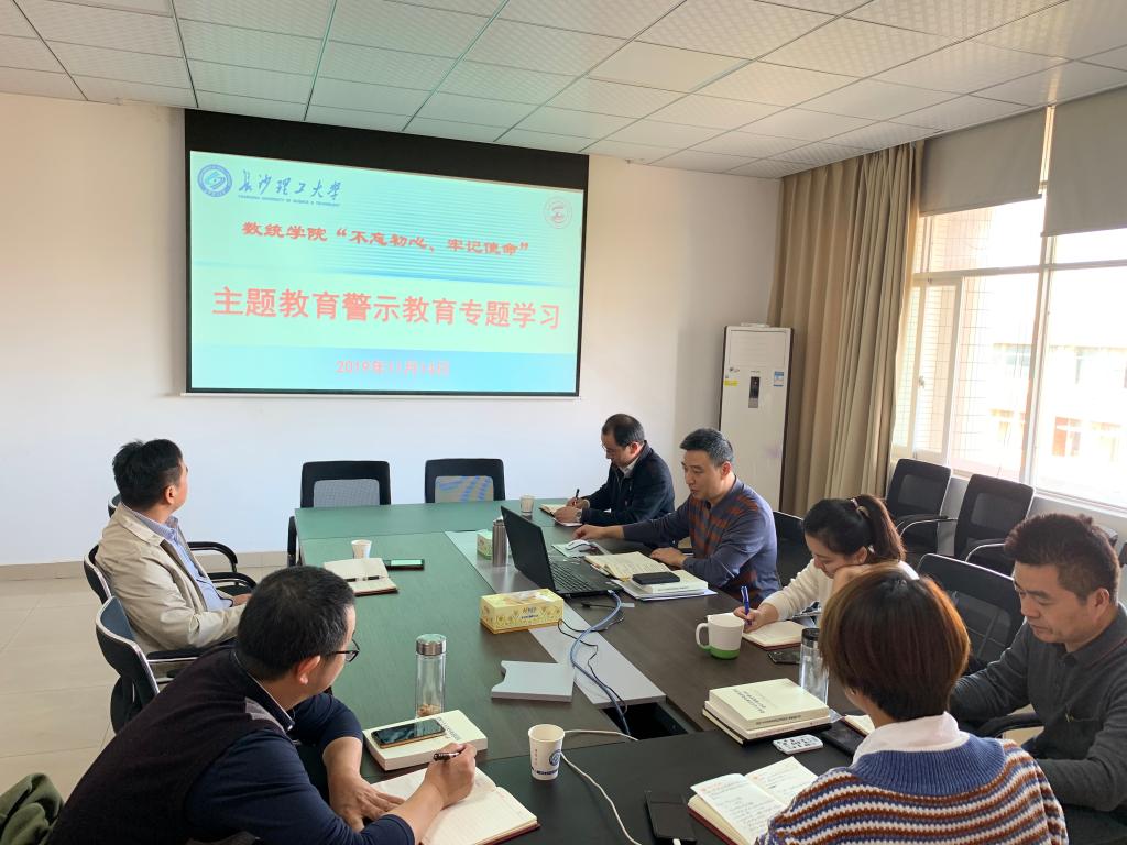 11月14日下午,根据省委和学校党委要求,数统学院党委召开警示教育专题学习,由党委书记张宏伟主持,全体班子成员参加学习。
