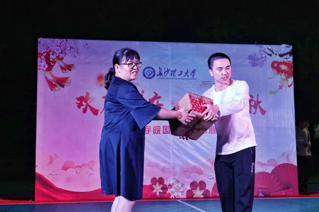 晚会开始前,同学们自发结伴参加了猜灯谜活动,现场瞬间营造出传统国庆中秋佳节这一团聚喜庆氛围。晚会伊始,丁丹结合国庆、中秋双节,向大家送上节日祝福并对2020级新生提出殷切期望。接着,学院给大家送上了“偷偷”准备的印有院徽和每一位同学名字的生日蛋糕,给大家惊喜的同时也让同学们感受到来自学院浓浓的爱意和家庭般的温暖。
