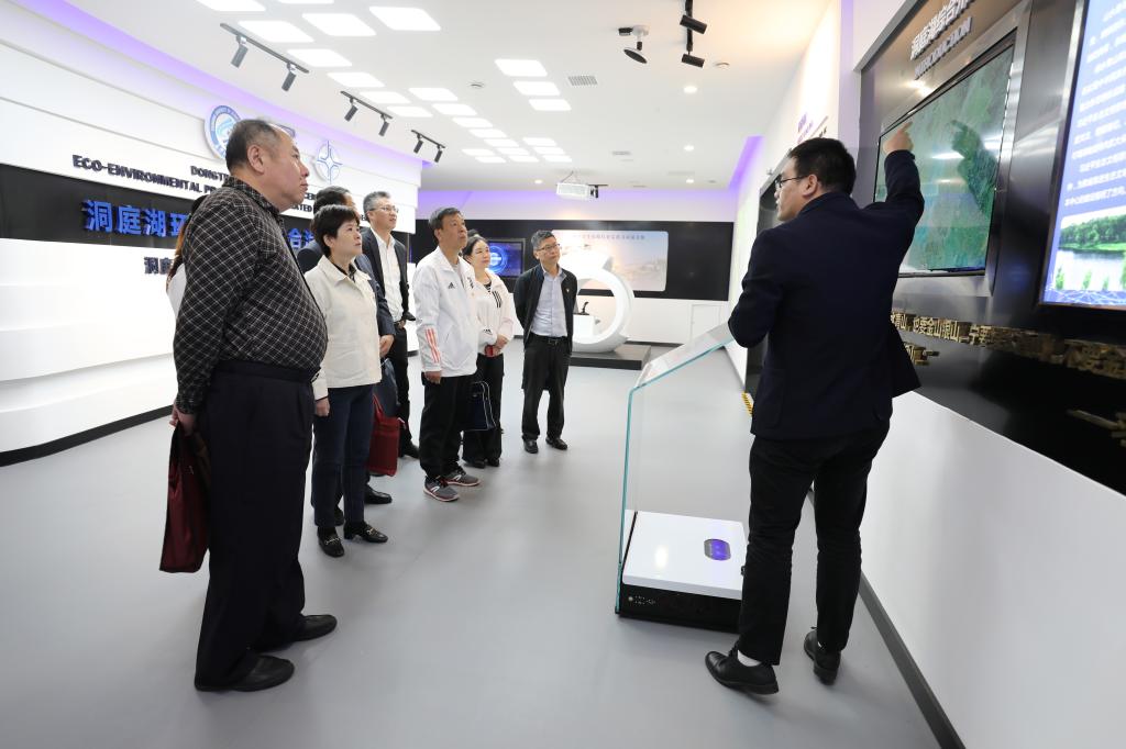 在“洞庭湖水环境治理与生态修复湖南省重点实验室”,学员们深入了解了洞庭湖水资源、水环境、水生态概况和当前面临的挑战与机遇、实验室的发展目标及近期在水生态保护方面取得的成效,观看了守护洞庭成果展板与地质地貌全息投影。2018年11月,湖南省委书记杜家毫调研云顶国际vip8866时,强调学校要充分发挥学科优势,加强洞庭湖环境保护与综合治理研究,并现场提出了科研课题。2019年,学校建设完成“智慧洞庭信息化平台”,实验室以习近平总书记“节水优先、空间均衡、系统治理、两手发力”的十六字治水方针为指导思想,将物联网、地理信息系统、云计算、大数据、虚拟现实等新一代信息技术相结合,紧密围绕洞庭湖流域水安全突出问题,建成了针对防汛抗旱决策支持、河长制综合管理、流域水资源管理、工程运行管理等业务系统于一体的流域信息化平台。