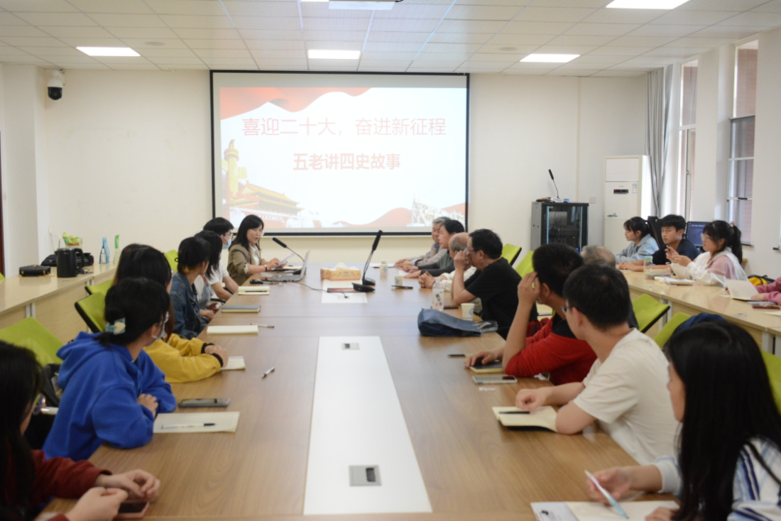 5月17日下午,数统学院在云塘校区理科楼A212开展“五老讲四史故事会”活动。本次活动由庄奕主持,特邀原长沙电力学院党政办主任潘子初、后勤处处长彭志群,数统学院特邀党建组织员黄凤英、退休职工党员黄礼平、退休职工党员杨韵生作为主讲人,数统学院全体发展对象共同聆听。