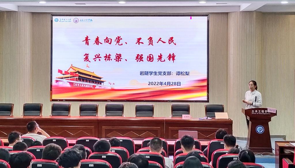 五四运动103周年之际,为加强支部党员、积极分子的理论学习,提高政治素养,4月28日,土木学院党支部在云塘校区工科二号楼A302召开了主题为“弘扬五四精神,喜迎二十大”的分享交流会。会议由邹智杰主持,邀请到了土木学院学生党总支副书记刘文成、湖南大学博士平智林、云顶国际vip8866博士叶欣及优秀本科生代表谭松梨、叶磊作主题宣讲。学生党员、学生干部、发展对象及入党积极分子代表约120人参加。