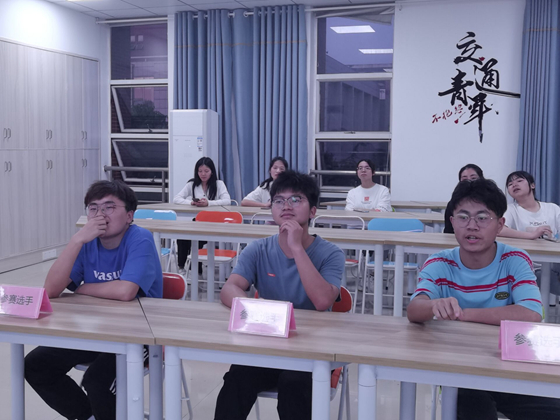 比赛开始前,学习部成员组织参赛同学在B-606教室进行比赛顺序抽签。随后,参赛同学进入候场室候场。比赛开始后,学习部成员按抽签顺序引导每组成员进入考场开始比赛,比赛采用口头作答的形式,规定一组共答十道题目,由小组成员自主选择题目作答,学习部成员计时、计分,答对题目多者晋级决赛,若答对题目数量一样,则时间较少者晋级。比赛过程中,各队成员克服紧张,快速浏览题目,冷静思考并作答。赛场上气氛紧张又激烈,选手们配合默契,观众们也随之热情高涨。最后,五组成绩高且用时短的本科生队伍成功晋级决赛。