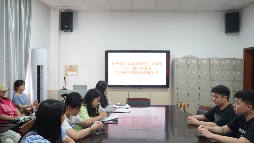 6月15日下午,云顶国际vip8866马克思主义学院研究生会六月全体成员会议暨换届选举大会在金盆岭校区四号教学楼503顺利召开。本次会议的主要内容为各部门学年工作总结以及换届选举大会。会议由院研究生会办公室干事林琳主持,辅导员曾蓓老师、校研究生会代表田维伟以及院研究生会全体成员参加了此次会议。