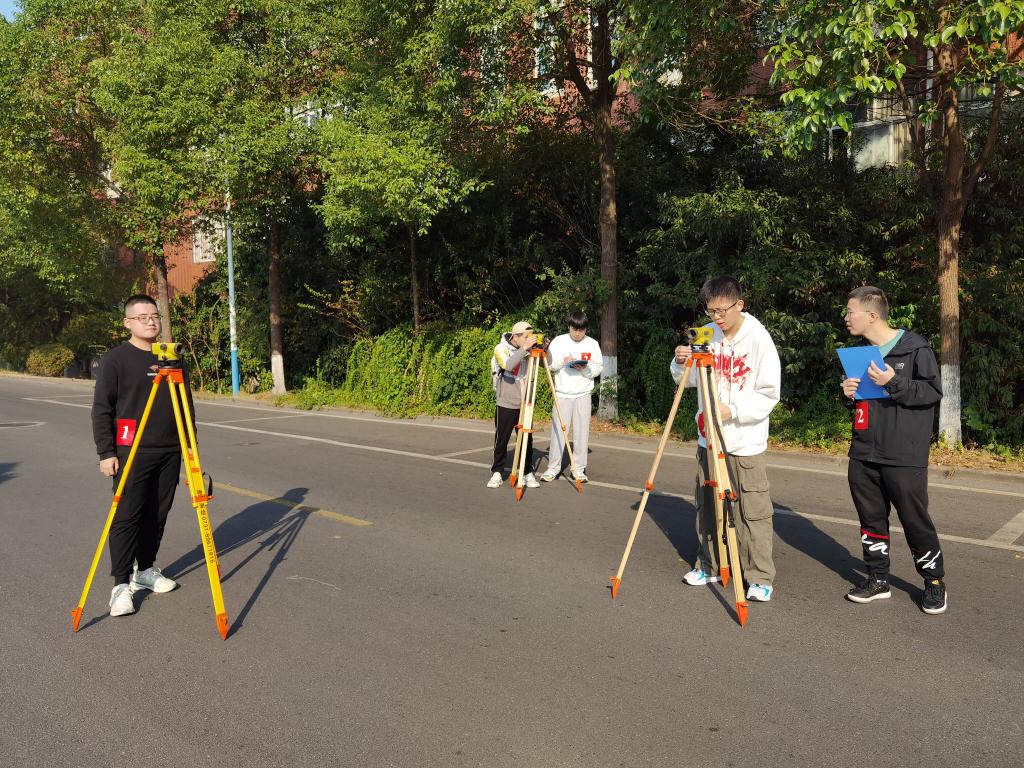 初赛内容为四等水准测量,要求四人一个小组,在规定时间、规定误差范围内完成比赛,根据初赛成绩排名,选取队伍晋级决赛。初赛过程中,各组参赛选手沉着冷静、配合默契,每位同学都有明确的分工。随着各小组的激烈比拼,比赛被推向高潮,这也充分调动了参赛选手的竞争性和积极性。最终经过评委老师的评判,共有44组参赛选手晋级决赛。