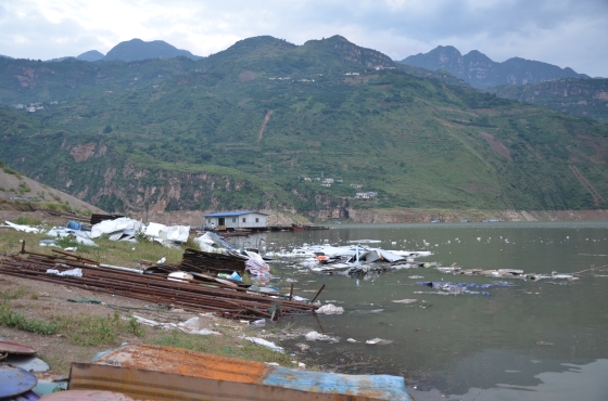实践准备前期,团队从与千万贯乡驻村扶贫干部的交流中了解到,之前当地村民利用地理优势发展网箱养鱼,长此以往,水体富营养化严重,对水域造成了严重污染,造就了产业发展与生态之间的畸形发展。为更具体掌握这一情况,实践团队于26日傍晚,穿过崎岖江边芦苇地来到金沙江畔开展调研活动。通过对岸边钓鱼者的询问,实践团队了解到,网箱在近期已被全部拆除,但水质生态的恢复却需要较长的一段时间。“还在养鱼的时候,那个水比现在还要黑还要臭,几乎钓不到鱼,可以说是一滩死水”,一位在江边钓鱼的村民略带失望地说到。