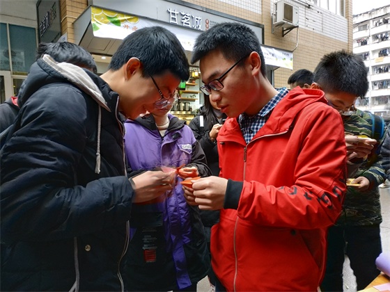 本次学雷锋系列活动包括以物传情签名活动故事分享会三个分场活动。下午,以物传情签名活动在金盆岭西苑食堂门口展开,不少同学积极参与,有的在便利贴上写下温馨的话语;有的则裁剪卡纸折叠成精美的小礼物;还有的用彩色的橡皮泥捏成各式各样的形状。同学们简短的话语中流露着浓浓的温情,小小的礼物却包涵着大大的爱意,为传递温情积极地奉献出自己的一份力量。随后,同学们在横幅上签下名字,许诺争当校园里的光盘雷锋
