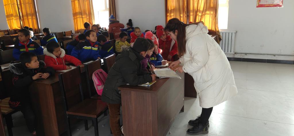 在活动过程中,孩子们都比较腼腆,不敢张口,生怕自己说错被其他同学笑话。麦尔哈巴特意安排了“讲故事”环节,每天花四十分钟时间,由学生用国家通用语言朗读课文或者讲述发生在自己身边的事。经过几天锻炼,学生们发音也越来越标准。她将教学重点放在了孩子们的语法纠正和口语练习上,结合自己在外求学接触到的新事物、新思想和亲身感受到祖国日新月异的新变化都讲给孩子们听,鼓励学生们好好学习,学好国语。随着志愿服务活动的顺利开展,村里的5位返乡大学生也陆续加入到她的行列,在小课堂开设了多门课程,不仅教授国语、数学,还辅导寒假作业。“一带一路”志愿服务团的队伍正在壮大!