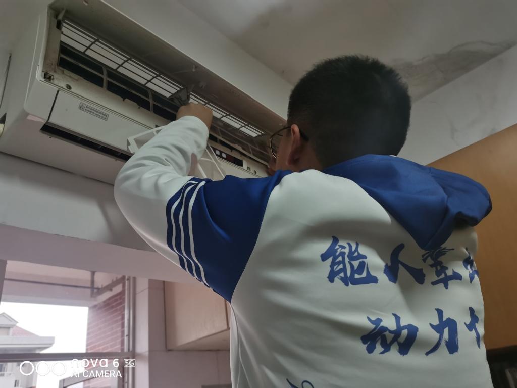 为更好地服务全校师生,学院“净化器”空调维保服务队在学院“源动力”公众号上开通“‘能’暖有我”预约专栏。自开学以来,团队收到了许多学生宿舍的清洁预约。3月6日至7日,学院空调清洁活动志愿者再次行动,在行二A区六楼和行四B区六楼开展空调清洁活动。通过此前的空调清洁志愿活动,志愿者们都积累了一定的经验,小组内分工明确,有的组员负责拆卸空调滤网、抹布擦拭空调内外部,有的组员负责将拆下来的滤网喷上清洁剂、擦拭干净。不顾尘土的飞扬,志愿者们乐在其中,他们脸上洋溢着笑容,每一声“感谢”都是对他们最大的肯定。