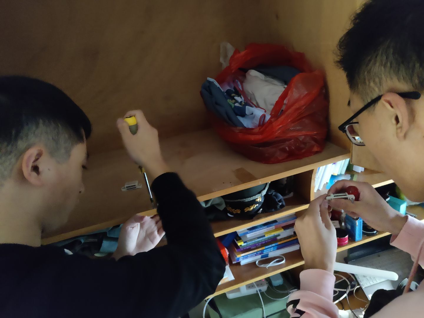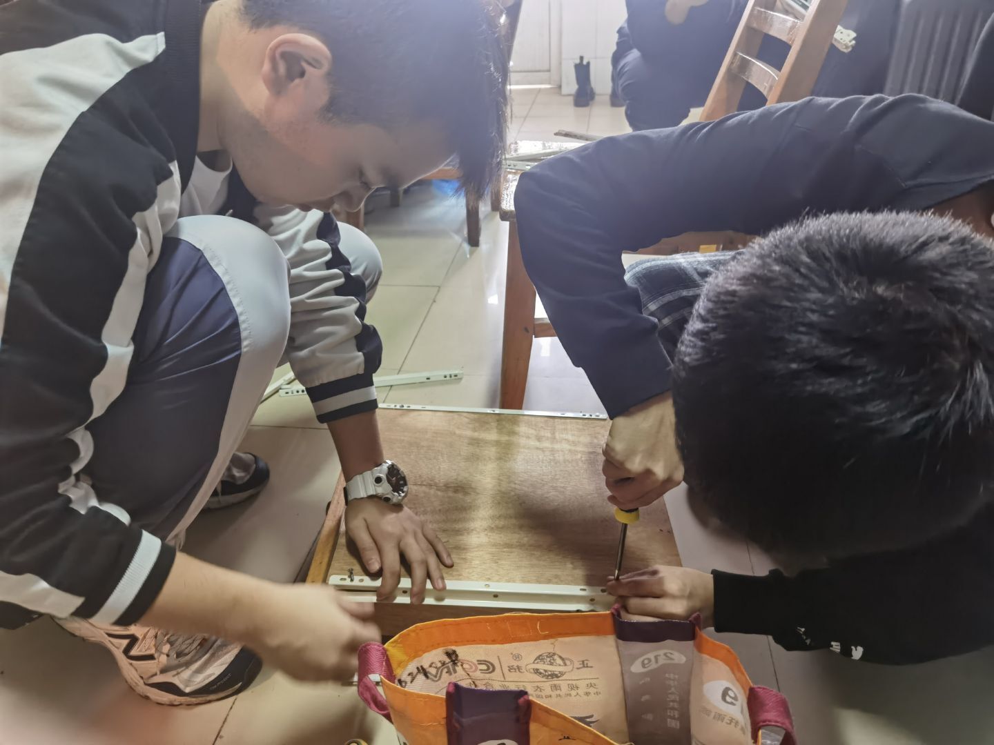 本次维修活动负责人张宇勇表示:“在今后的生活中,同学们如果遇到柜门无法闭合、抽屉滑轨脱落、卫生间插销损坏等问题,都可以通过‘交通青年学生社区’公众号的‘维修通道’进行报修。”