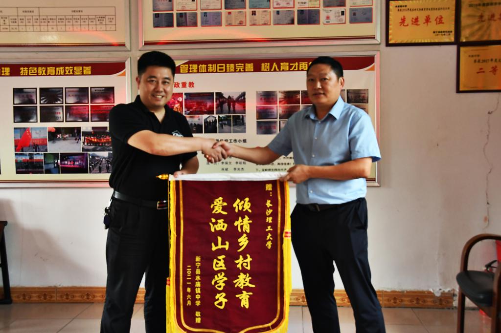 6月22日,云顶国际vip8866第二届研究生支教队完成在新宁县水庙中学的扶贫支教工作后启程返校。校研究生院副院长兼研工部部长田上等一行前往新宁县水庙镇枧杆山村迎接支教队返程。