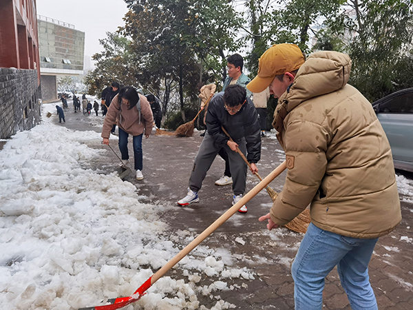 2月23日,我院全体辅导员老师,学生党员及学生干部积极响应号召,主动投身清扫积雪活动。在李伟、万馨的带领下,师生配合默契,挥动铁锹、舞动扫帚,坚决吹响清雪“集结号”,保障师生出行安全。