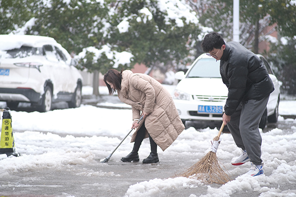 “东风迎新岁,瑞雪兆丰年”,2月22日至23日凌晨,长沙迎来新一轮强降雪。2月23日上午,艺术学院师生在建筑艺术楼、第一办公大楼前坪开展清扫积雪活动,院党委书记李伟,副书记万馨,党政办主任龙海及全体学工办老师参与其中。