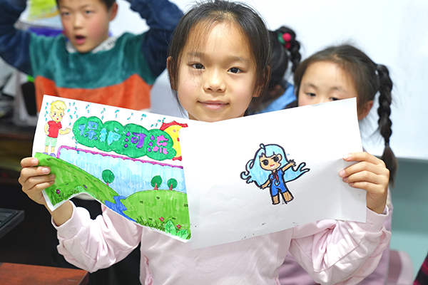 以“传播护河理念,争做护河先锋”为主题,本次志愿活动旨在宣扬护河理念,在课堂学习中提升孩子们保护河流的意识,让守护绿水青山成为习惯。活动在一堂别开生面的特殊“美育课堂”中展开,志愿者将课堂学习与动画视频相结合,由河流基础知识引入对河流污染与生态保护的介绍,深入讲述“保护一江碧水”的责任与使命,同时号召小朋友们积极地加入爱河、护河队伍中。整个课堂生动有趣,寓教于乐,小朋友们积极参与有奖问答环节,讲述自己内心对“护河”的理解,他们动用手中的画笔,在线稿上进行涂色,奇幻的色彩与创意画面交织出一场巧妙的色彩之歌,创造出一幅生动的“护河”作品。
