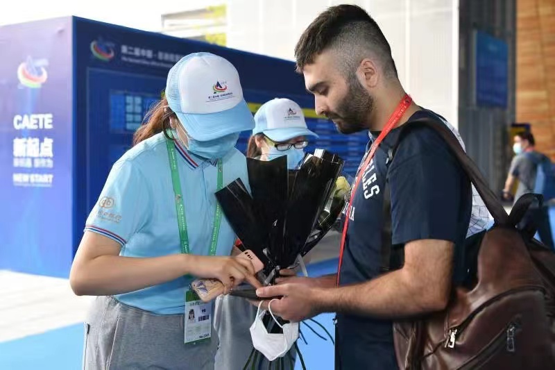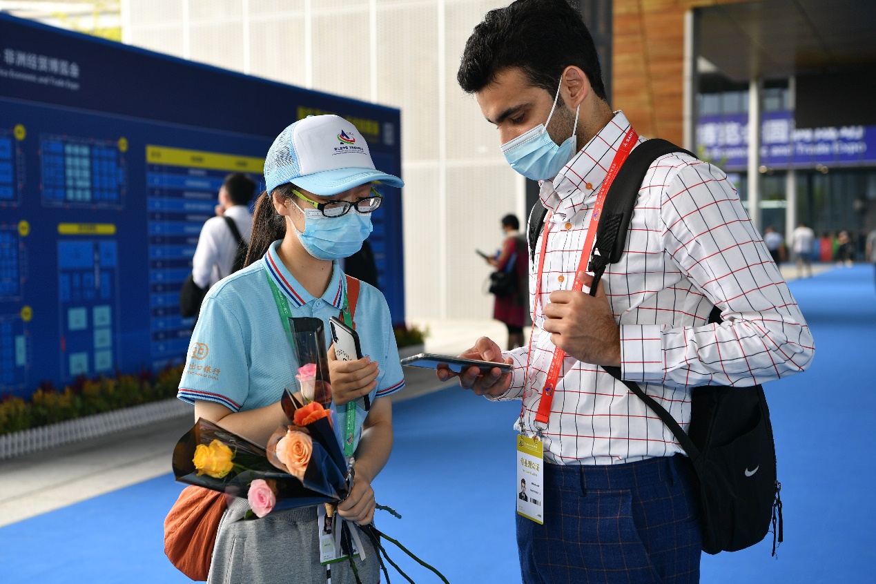 经历了一整天紧张而充实的培训后,32名研究生迅速进入各自岗位,在会议协调、专题活动、展览展示、大使接待等工作上,为外国友人提供志愿者服务。在疫情防控的大背景下,志愿者们不惧高温,坚持佩戴口罩,克服各方面的困难,认真完成组委会交于的各项任务,受到大会主办方及与会嘉宾的肯定与赞赏。