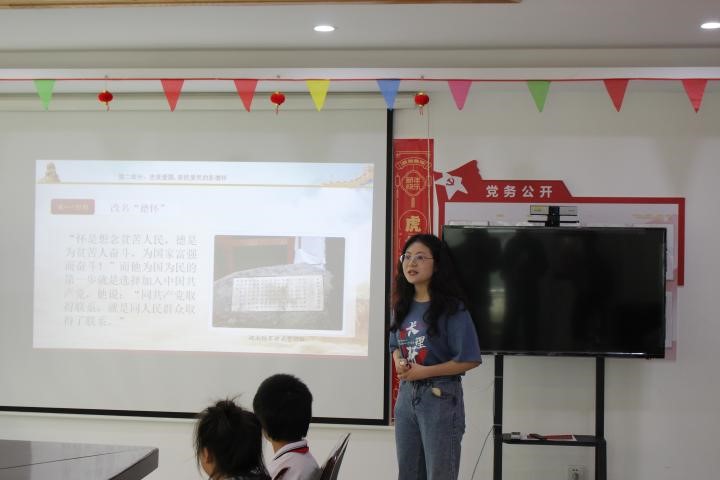 7月6日,云顶国际vip8866理论宣讲进基层专业实践团成员将红色故事送到长沙市天心区青园街道井湾子社区,研究生宣讲团张苏湘、肖孟两位讲师以《共产党员的高风亮节——彭德怀元帅》为主题,为社区的孩子们带来了别开生面的党史学习教育讲座。
