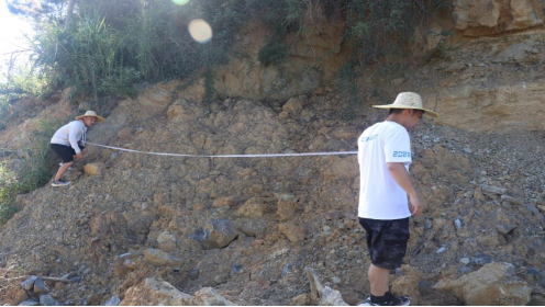 (博士实践团测量边坡各项数据)