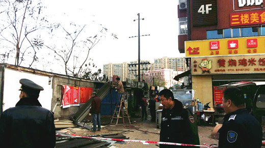 下午2:30,先锋街道及保卫处工作人员带领工具在西门岗亭处集合,在前期做了大量告知和宣传工作的情况下,于3点准时开始开展拆除行动,工作人员将拆除区域设置了警戒线,各路口站立警卫人员,整个整治行动有序推进,圆满完成了预期的目标和任务。