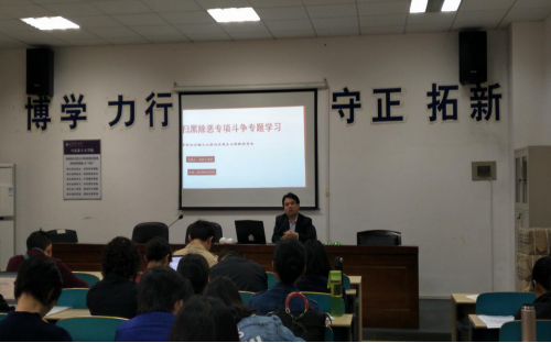 4月16日下午,马克思主义学院党委组织全院教师在云塘校区文科楼C202进行了“扫黑除恶专项斗争”专题党课学习,此次专题学习由学院党委书记易显飞主讲。