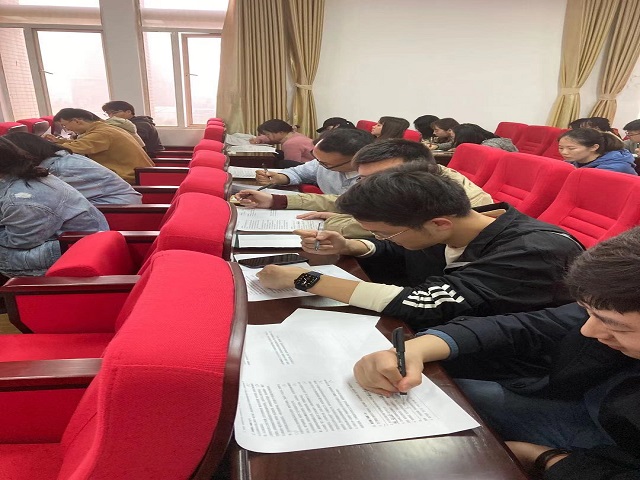 最后,为增强此次学习的效果,学院现场组织同学们参加防电信诈骗考试,并就典型案例以小组为单位展开讨论分析。