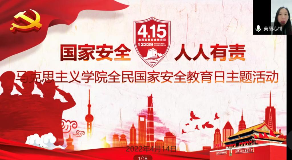 2022年4月14日15:00,学院组织全体学生收看“千万师生同上一堂国家安全教育课”,了解学习国家安全的内涵、发展以及成就;邪教的“六大危害”;日常防诈骗的四个注意、八个字;军事安全维护“六个不”等,辅导员曾蓓重点强调同学们要特别注意日常生活中的意识形态安全、网络信息安全,加强防范、主动抵制邪教等。