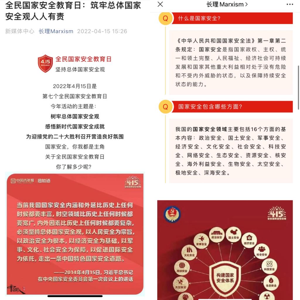 4月15日,学院通过微信公众号推文、发放学习资料等对国家安全知识进行广泛宣传,营造了良好的国家安全知识学习氛围。