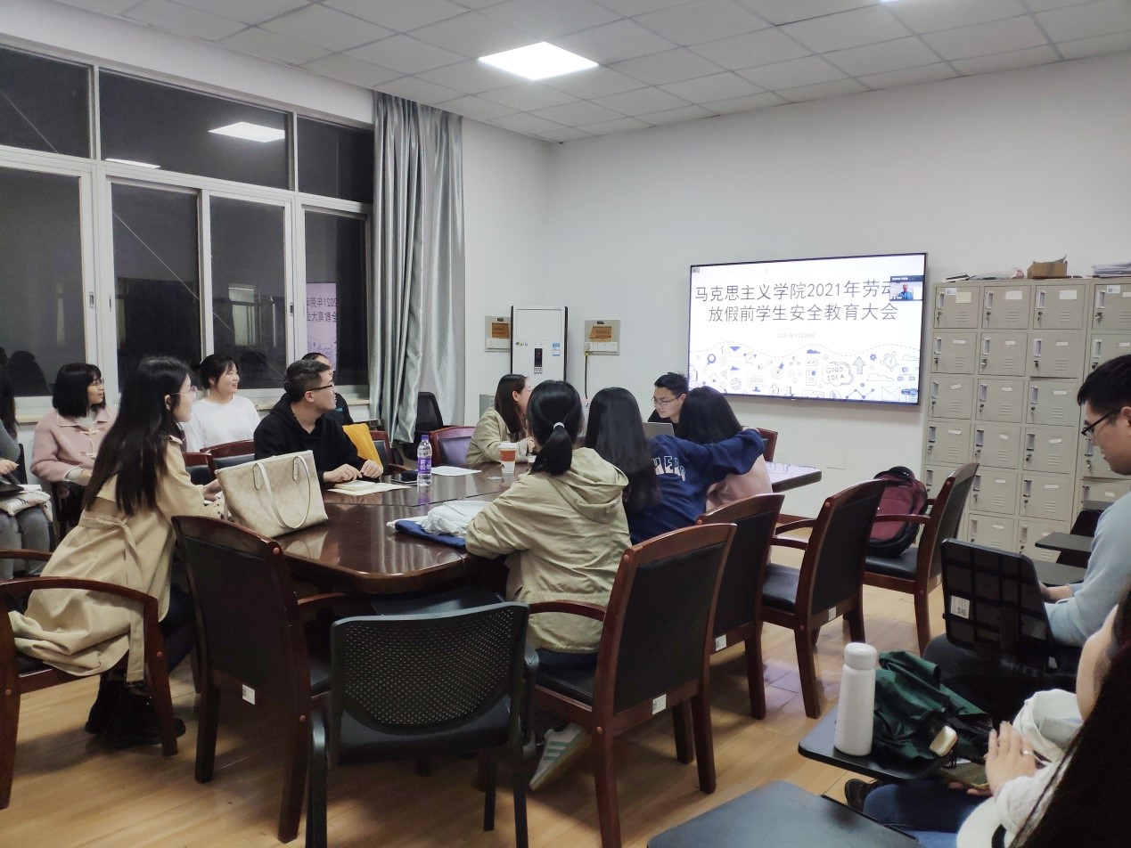 4月28日晚,马克思主义学院召开劳动节假前学生安全教育大会,辅导员老师曾蓓对2018级、2019级及2020级学生进行假期安全教育。