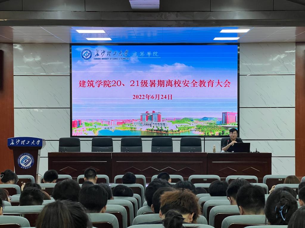 为确保学生安全有序离校,6月20至30日,建筑学院在金盆岭校区6号教学楼、4教报告厅等场所,分年级陆续召开2022年暑期离校及安全教育大会,各年级辅导员担任主讲,全体学生参加。