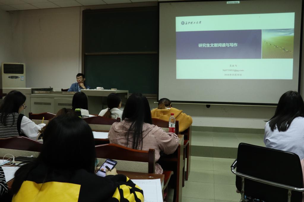 为让新生更好的适应研究生学习生活,10月30日下午,吴永飞博士受邀在金盆岭7教110室以“研究生文献阅读与写作”为主题展开讲座,向2018级新生分享相关研究经验与学习经验。