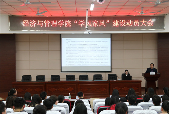 3月15日晚,经管学院“学风家风”建设动员大会于云塘校区文科楼A200举行。本次大会旨在切实改进学风建设与文明寝室创建中存在的问题,以营造良好学习和生活环境。经管学院党委副书记涂道勇,团委书记何涛以及全体团学成员参加本次会议。