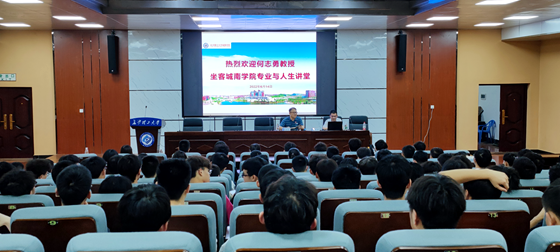 6月14日晚,城南学院在金盆岭校区四教报告厅举办了以“专业与人生”为主题的讲座。学校汽车与机械工程学院副院长何志勇应邀主讲。城南学院副院长刘洪深主持讲座。能动汽机系200余名师生聆听讲座。