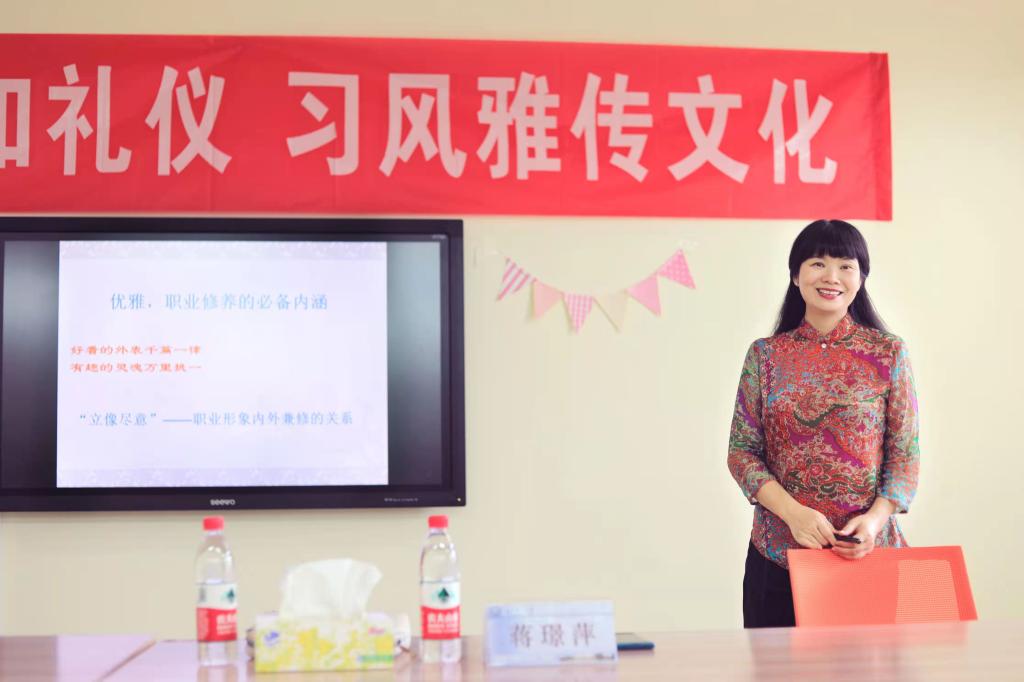 讲座中,蒋璟萍教授深入浅出,旁征博引;娓娓道来,声情并茂,蕴含哲理于幽默风趣的言谈之中,以丰富生动的案例循循善诱。在整整两个小时的讲座过程中,学员们侧耳聆听,不时根据老师的讲授调整着自己的仪态,如沐春风。王双在总结中表示,“今天在场师生收获颇丰,不仅一起收获了关于礼仪文化的知识和技巧,更在大家的心里播种了“做一名优雅的职业女性”的小小心愿,让我们一起期待它生根发芽,茁壮成长。”