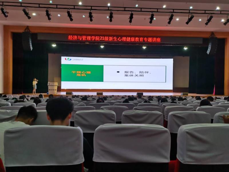 为普及心理健康知识,帮助新生解决入学面临的各种心理问题,我院于9月28日下午2:30,在五号教学楼大礼堂举行了"21级新生心理健康教育专题讲座"。本次讲座有幸邀请了湘潭大学心理健康教育中心副主任程燕副教授,云顶国际vip8866心理健康教育中心易敏老师进行主讲。参与本次讲座的有21级新生辅导员王宝宝老师和肖翠老师, 学院心理辅导员何艳芝老师,研究生辅导员陈莹老师,以及经管学院全体21级本科新生、研一新生。此次讲座由王宝宝老师主持。