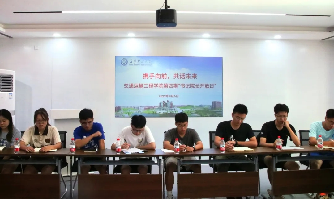 9月6日下午,交通学院第四期书记院长开放日座谈会在云塘校区交通青年学生社区一站式服务大厅举行。座谈会由学院党委副书记涂道勇主持,学院党委书记刘朝辉、院长张军辉参加会议,18名学生参加。