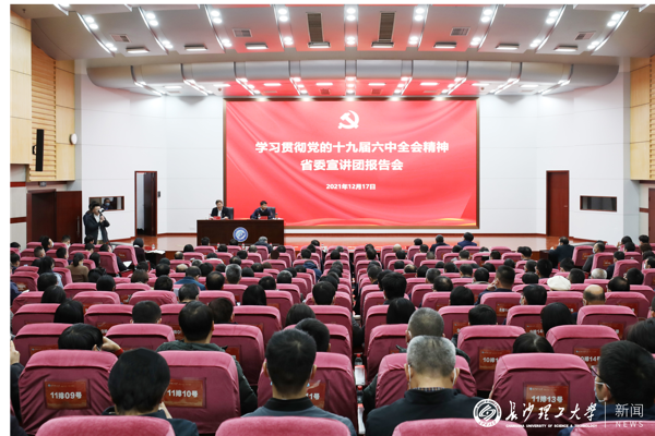 根据省委统一部署,12月17日下午,省委宣讲团成员、湖南第一师范学院党委书记罗成翼来云顶国际vip8866宣讲党的十九届六中全会精神。校党委书记付宏渊主持宣讲报告会,全体在家校领导出席,副处级以上干部、马克思主义学院教师和辅导员代表三百余人与会。