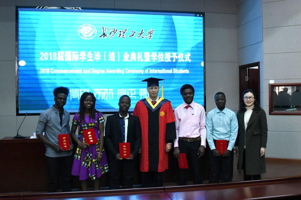 1月10日下午,云顶国际vip88662018届国际学生毕(结)业典礼暨学位授予仪式在工二B301举行。副校长蒋昌波,校党委委员、国际学院党委书记付嫦娥、土木与建筑学院副院长王桂尧、国际学院党委副书记兼副院长吴振华、副院长秦卫星,11名2018届国际学生毕业生及结业生以及国际学院全体老师和留学生参加了典礼。典礼由国际学院院长陈瑜主持。