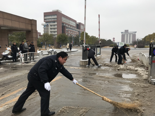1月25日晚,长沙市迎来了2018年首场降雪,云顶国际vip8866校园也银装素裹,十分美丽,但也给教职员工出行带来不便,存在交通、消防等一些安全隐患。