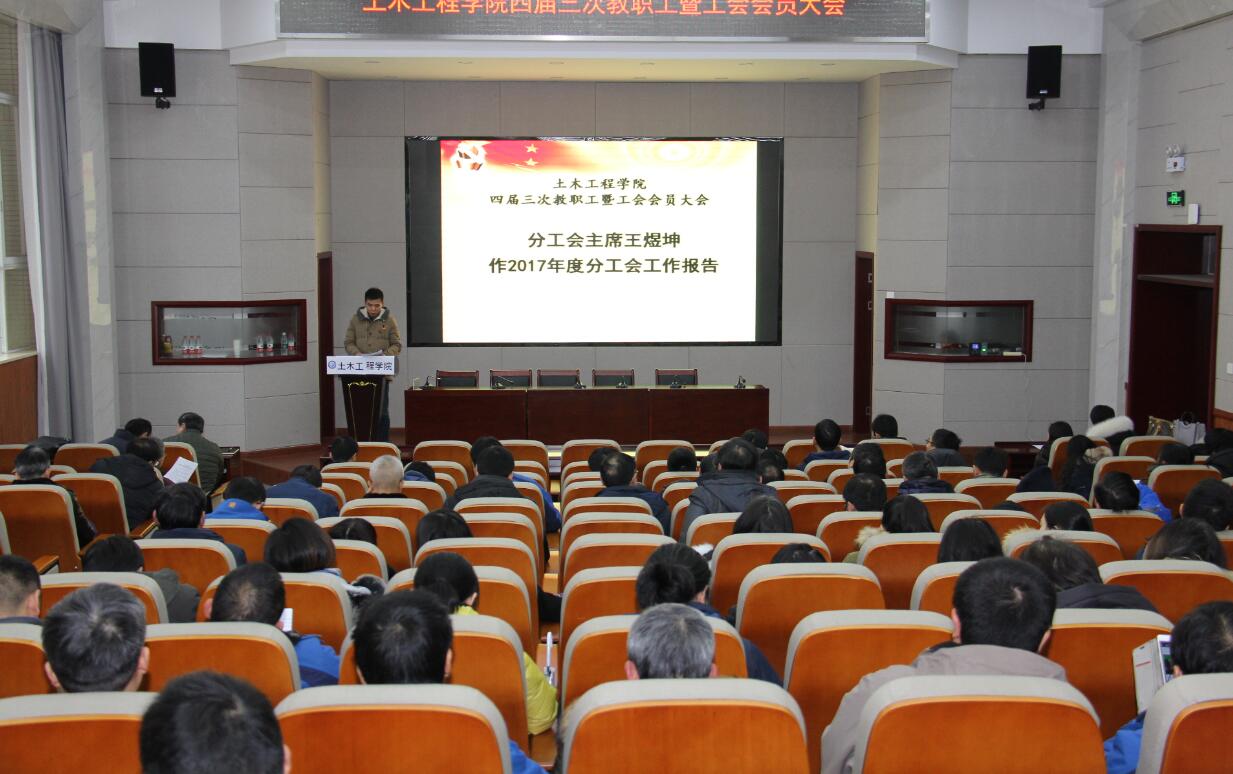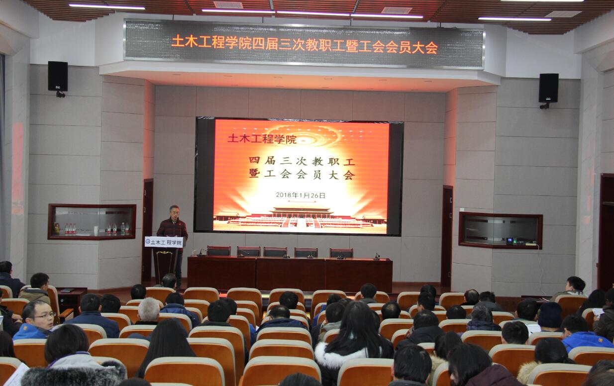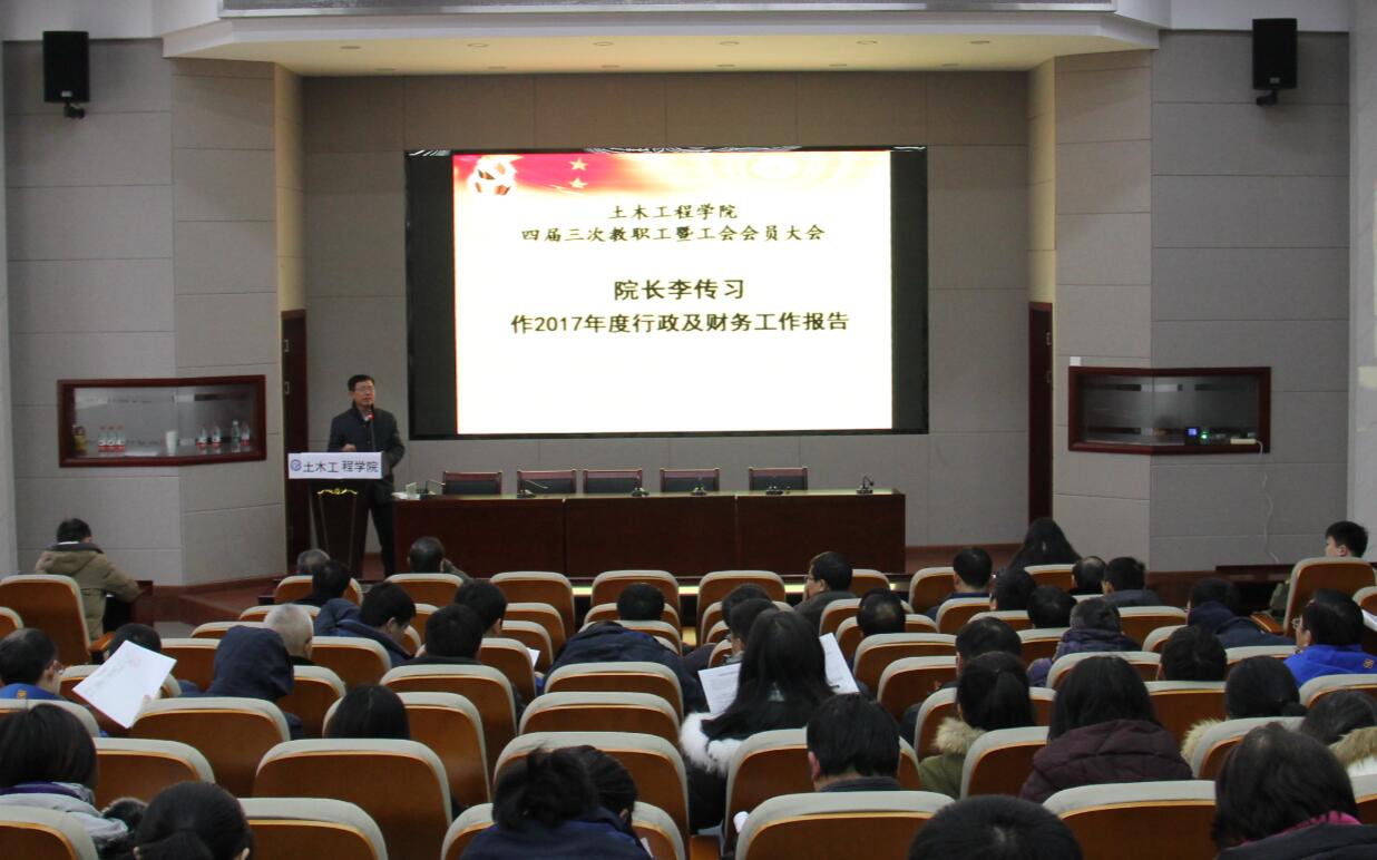 1月26日上午,土木工程学院在工科二号楼B301报告厅召开四届三次教职工暨工会会员大会。院党委书记张可荣,院长李传习,党委副书记、分工会主席王煜坤,其他在院班子成员,以及学院全体教职工参加。会议由张可荣主持。