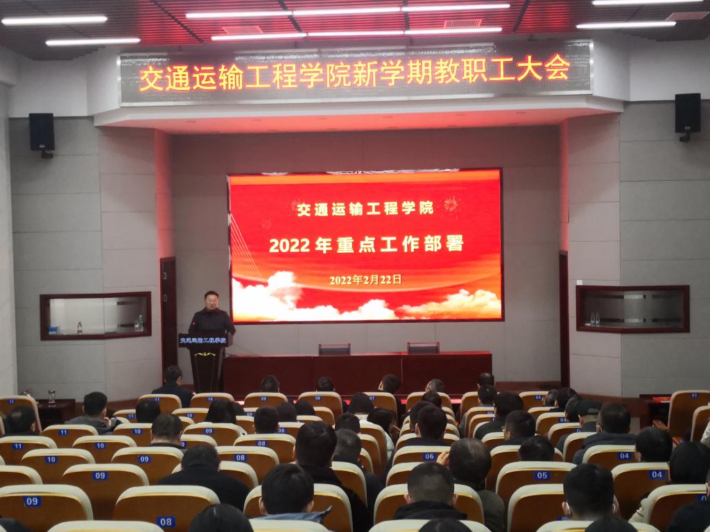 2月22日下午,交通学院全院教职工在云云塘校区工二B-301报告厅召开新学期重点工作部署会,会议由院党委书记刘朝辉主持,全院教职工参加。