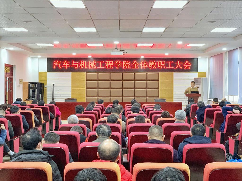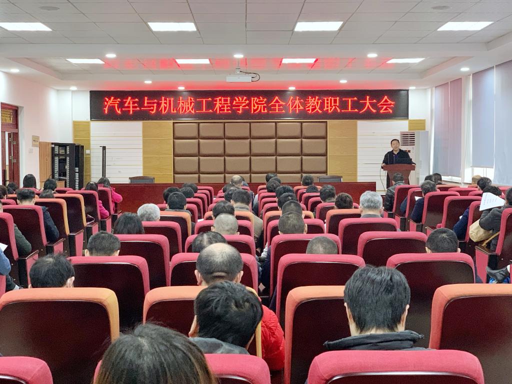 3月1日下午,汽机学院在工科一号楼B417多功能报告厅召开新学期首次全体教职员工大会。会议由学院党委书记施一满主持,全院教职工参加了会议。