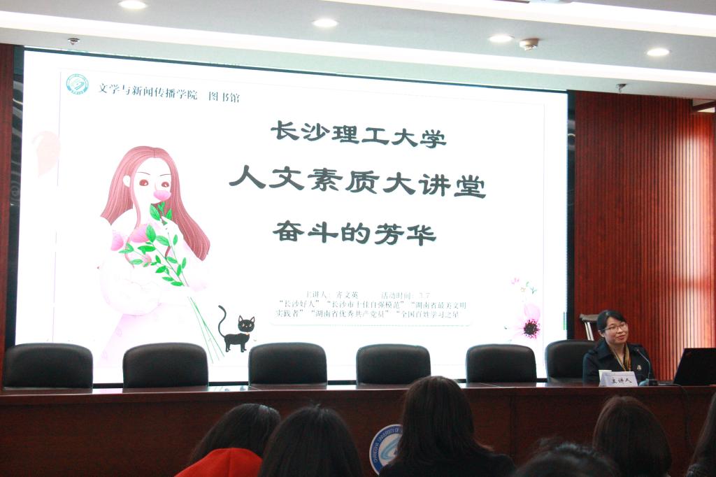 3月7日晚,文学与新闻传播学院联合图书馆、校友合作处在云影文化传播中心举办人文素质大讲堂——奋斗的芳华。学院党委副书记刘莎,图书馆信息服务部邓婕、刘瑛、周思妤,学院辅导员楚艳鸽、李敏等老师以及百余位学生参加此次讲堂。