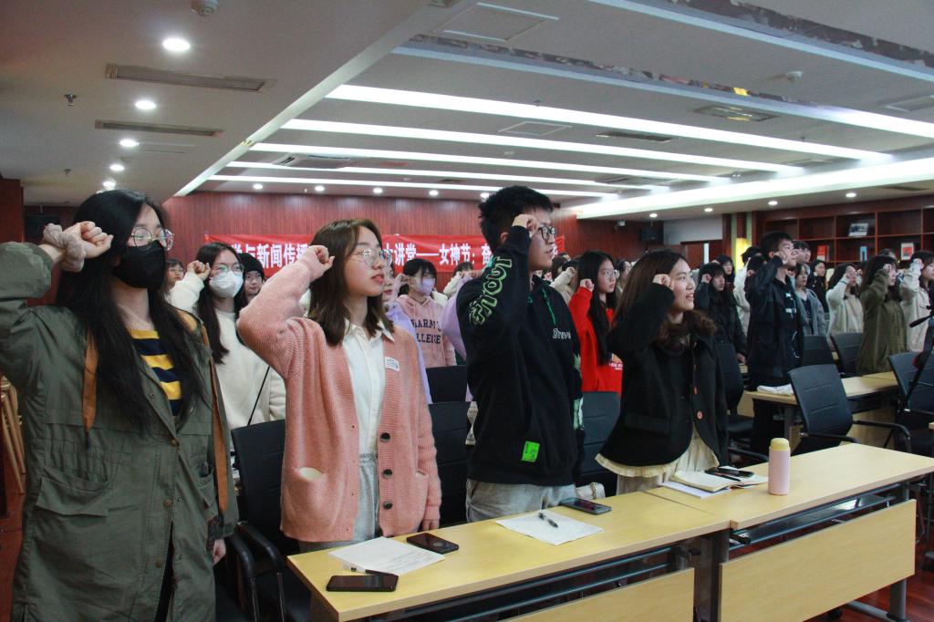 青春因磨砺而精彩,人生因奋斗而升华。通过与齐文英的交流互动,同学们更强烈地感受了青春奋斗的意义,也认识到什么样的女生才能被称作是真正的“女神”。正如讲座最后学生集体所做的青春誓言中那般:“砥砺前行,志在千里,孤灯黄卷,路沙淘金!来时我为精英,去时自当夺魁!”