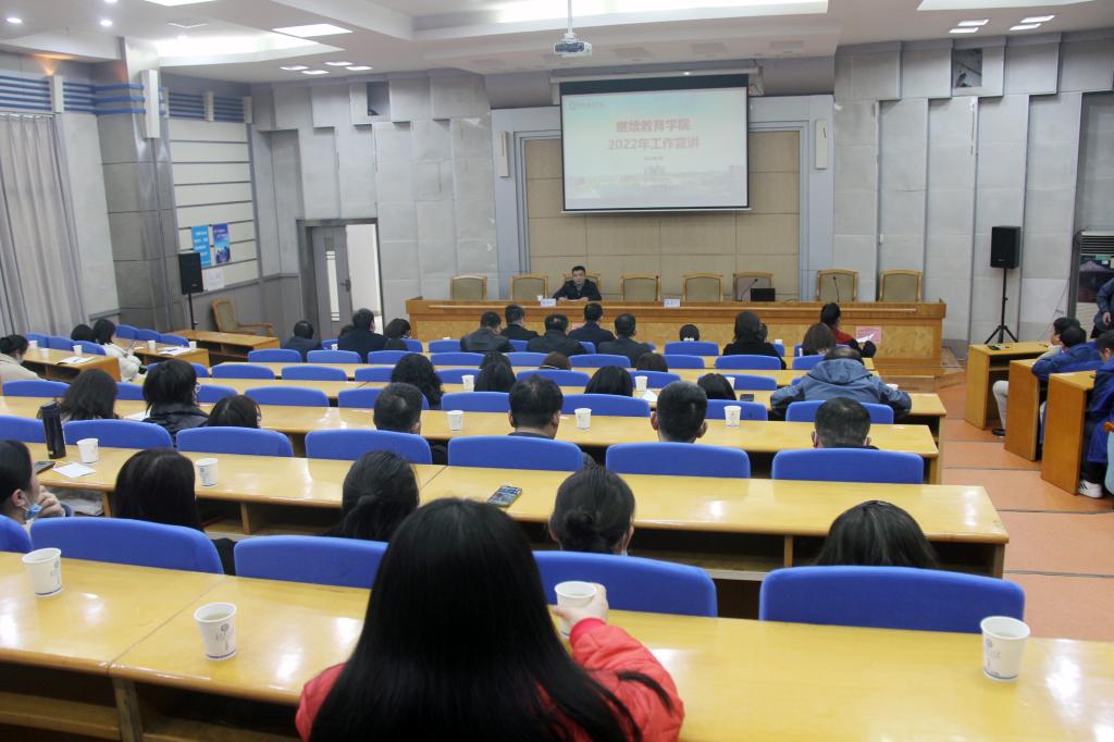 3月1日下午,继教学院在金盆岭校区办公大楼一楼多功能报告厅举行全院职工大会,进行年度工作部署。