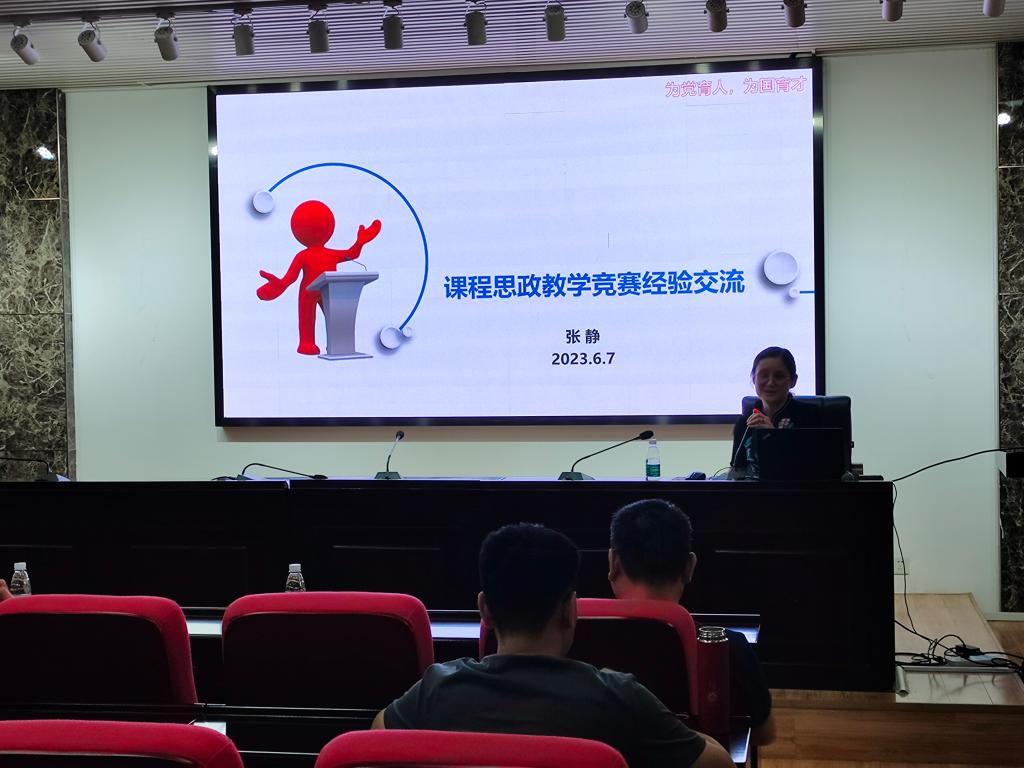 6月7日下午,物理与电子科学学院邀请了湖南省课程思政教学比赛一等奖获得者张静老师在理科楼B413作了题为《课程思政教学竞赛经验交流》的讲座。讲座由学院党委书记张国强主持,学校教学督导团团长唐立军、学院领导班子和全院近60名教师现场聆听了讲座。