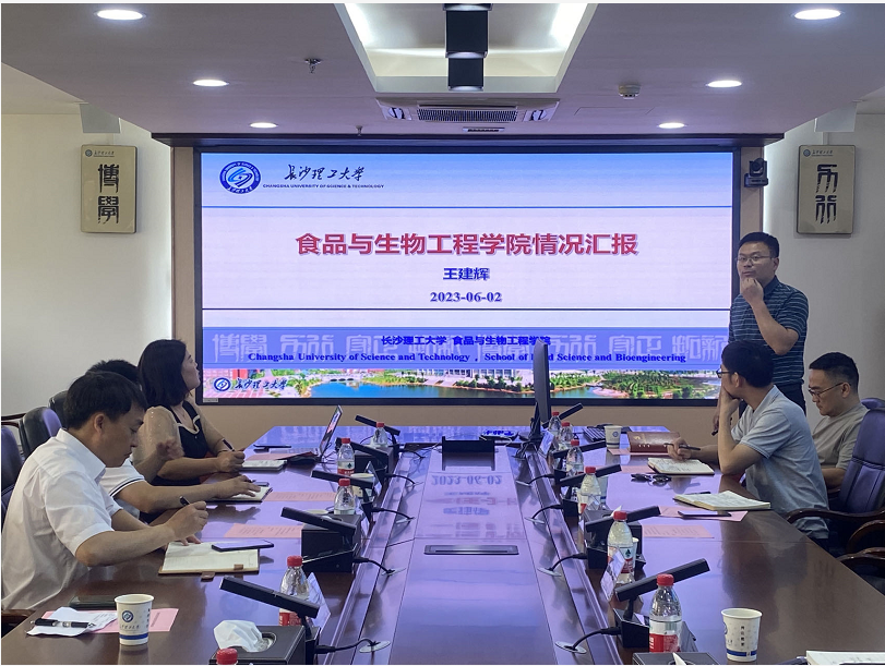 王建辉详细介绍了学院历史沿革、专业设置及学位点建设、教学科研成果及学院特色研究方向,特别是在预制菜、淡水鱼、稻米、鲜湿米粉等极具特色领域的情况。