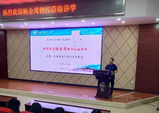 6月14日上午,湖南省委宣传部原副部长、省文化创意产业协会会长杨金鸢教授应邀来到马克思主义学院,在云顶国际vip8866云塘校区文科楼A200报告厅作了题为“让善待自己成为生命常态”的专题讲座。本次讲座由我院唐俊副院长主持,一、二年级研究生聆听了讲座。